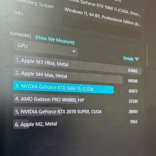 それで、やっとこ先日届いたPCにいろいろインスコなど。RTX5060TI(16G)でどんなもんかなとCINEBENCH2026で測ってみたら61873だった。ついでにだいぶ前から使っているRTX3070も測ってみたら43364なので、比べればちょこっと速いのかな。